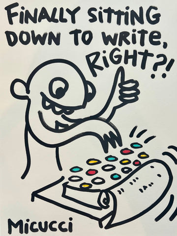 Kate Micucci, "Finally sitting down to write, right?!" SOLD